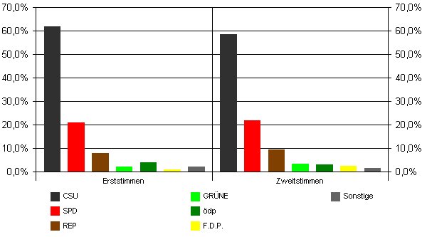 | Landtagswahl 1998 | 976 | 595 | 60,96% | 592 | 3 | 584 | 11 |